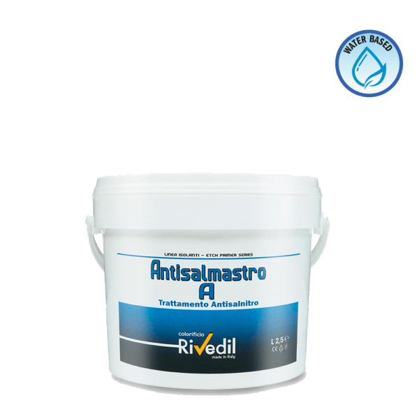 Bonificante antispolvero all'acqua per pareti infette da salmastro.