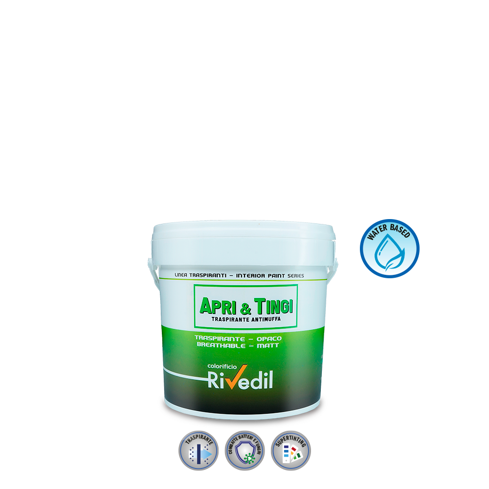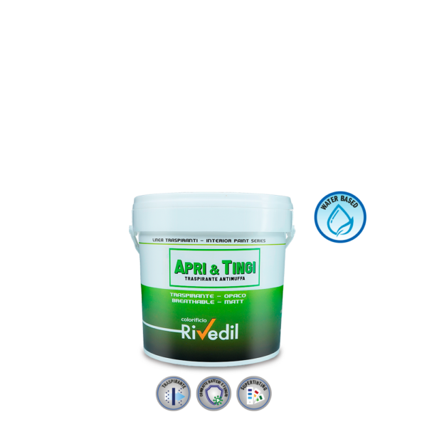 Idropittura per interni di alto pregio. Traspirante di ottima copertura. Indicata contro muffe e funghi.