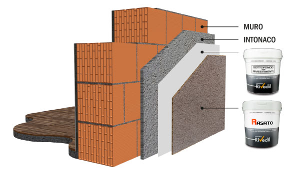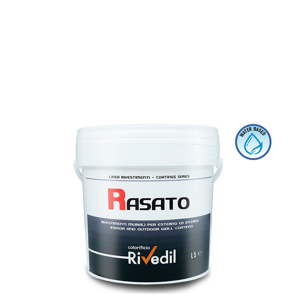 Rivestimento rasato spatolato a base di resina acrilica per superfici murali.